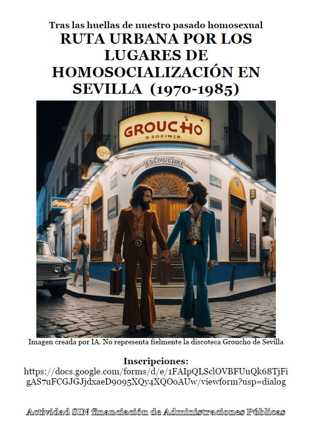 La “Ruta Urbana por los lugares de homosocialización en Sevilla (1970/1985)” se une este año a la tradicional “Ruta Urbana por la Historia de las Disidencias Sexuales en Sevilla” que de la mano de la asociación Adriano Antinoo recorre las calles de Sevilla.