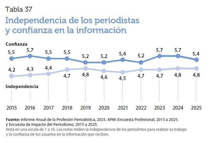 Aunque el estudio recoge algunos datos positivos, como la reducción del paro por segundo año consecutivo, el balance general evidencia un oficio tensionado por la polarización política, la desinformación y la transformación acelerada del ecosistema mediático.