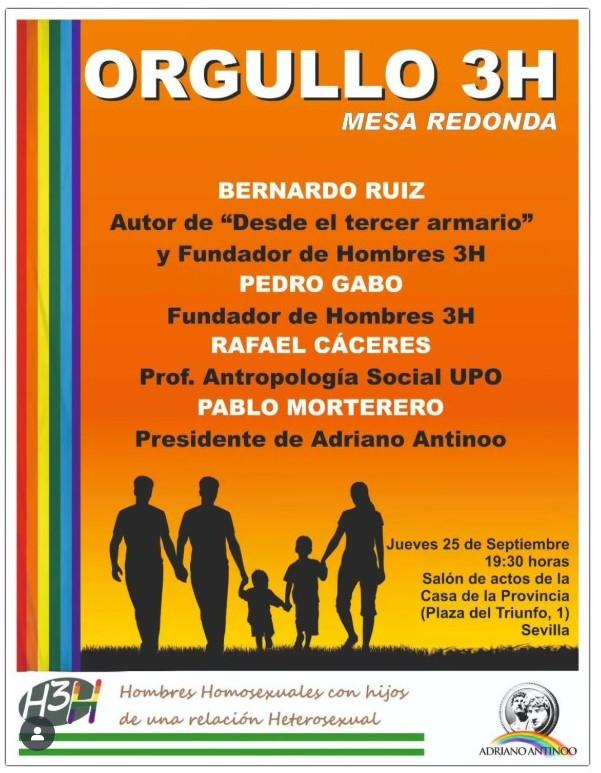 El jueves 25 de septiembre a las 19:30 horas, el salón de actos de la Casa de la Provincia (Plaza del Triunfo, 1, Sevilla) será el escenario de la mesa redonda “Orgullo 3H”, un espacio de reflexión y diálogo en torno a la diversidad familiar y la visibilidad de los hombres homosexuales con hijos nacidos de relaciones heterosexuales.