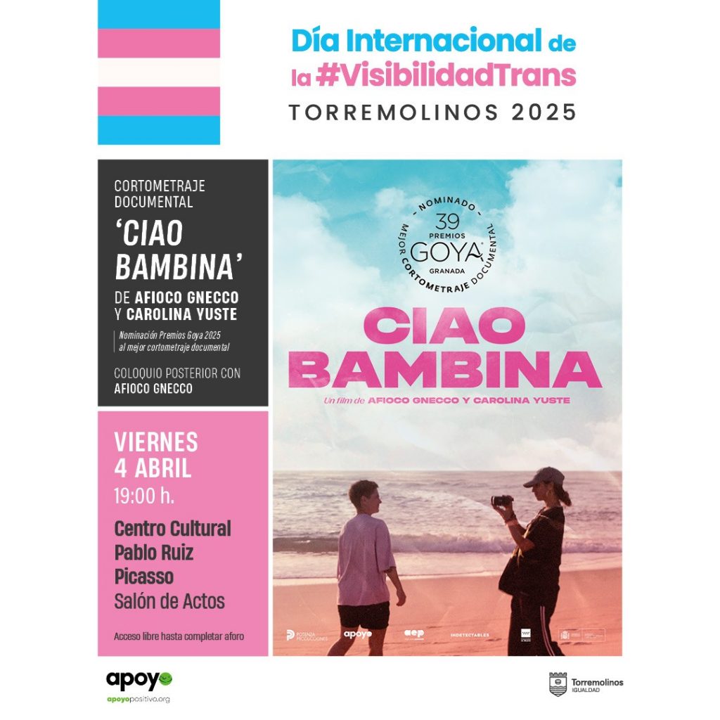 El Ayuntamiento de Torremolinos, en colaboración con la ONG Apoyo positivo, y en conmemoración del Día Internacional de la Visibilidad Trans, ha organizado la proyección del cortometraje documental «Ciao Bambina», nominado a Mejor Cortometraje Documental en los pasados Premios Goya 2025.